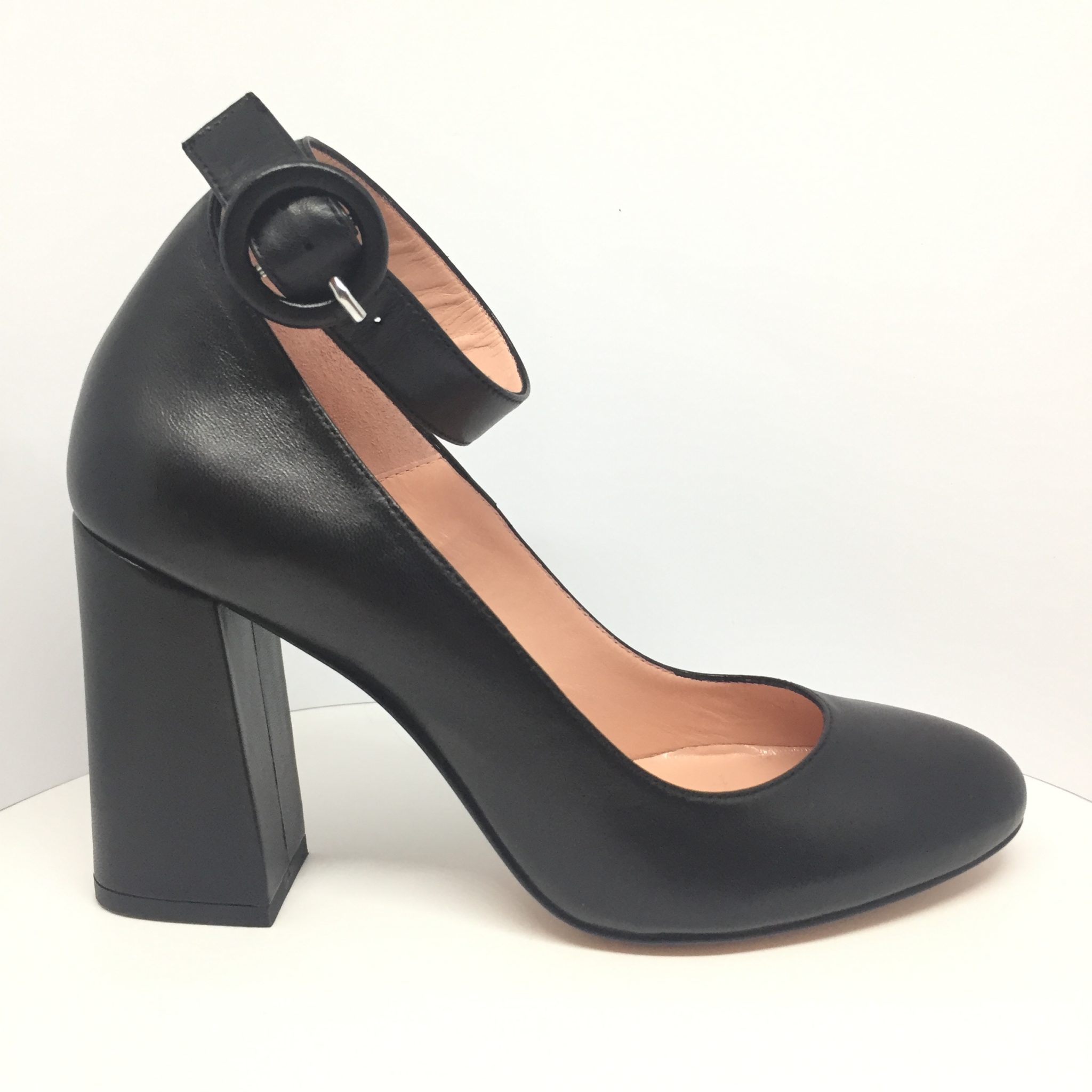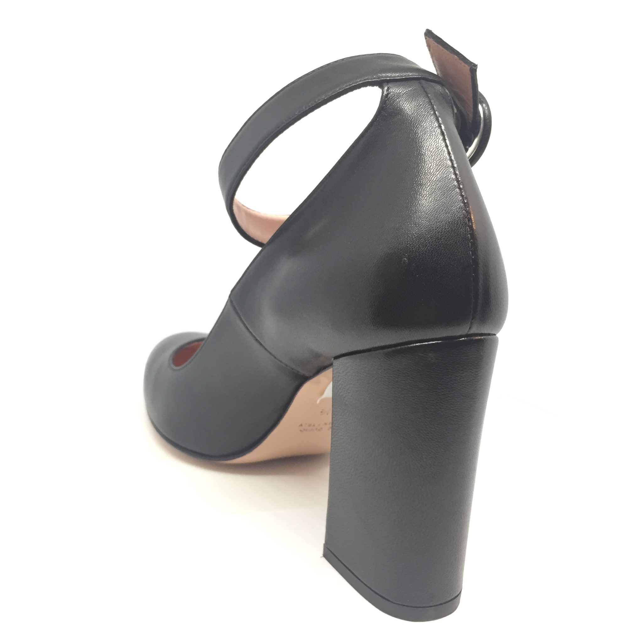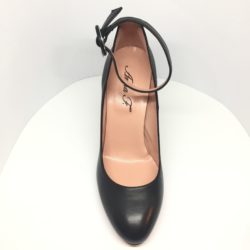 Décolleté in nappa nera con laccino alla caviglia. Tacco 9,5 cm.