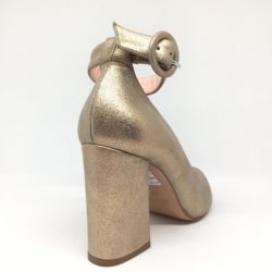 Anna F. Decolletè spuntato con laccino alla caviglia sfilabile, in pelle laminata rosa cipria, tacco fasciato pelle cm.9, suola cuoio 100% Made in Italy