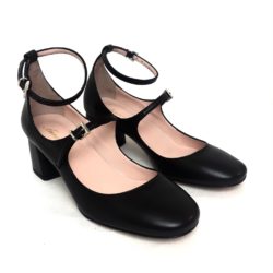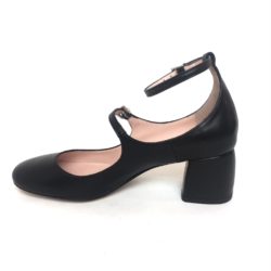 Anna F. scarpa modello Mary Jane in nappa nera, laccino della caviglia sfilabile, fibbie cromate silver, tacco cm 5, suola cuoio 100% Made in Italy