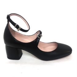 Anna F. scarpa modello Mary Jane in nappa nera, laccino della caviglia sfilabile, fibbie cromate silver, tacco cm 5, suola cuoio 100% Made in Italy