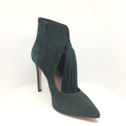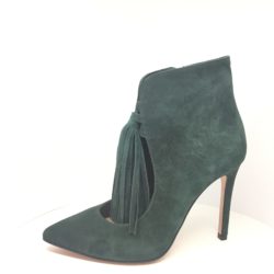 Tronchetto in camoscio verde con nappina. Tacco 11 cm