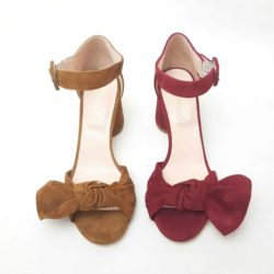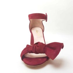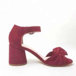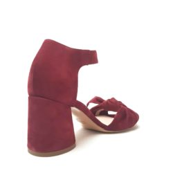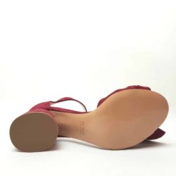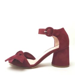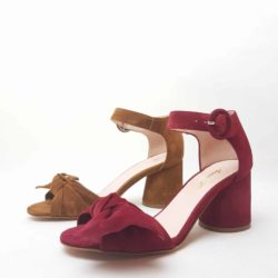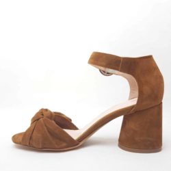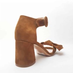 Anna F. sandalo in vera pelle scamosciata con tacco tondo rivestito. Dettaglio: fiocco sulla fascia. Tallone chiuso. Sottopiede imbottito. Fondo cuoio. Made in Italy