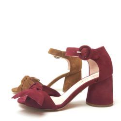 Anna F. sandalo in vera pelle scamosciata con tacco tondo rivestito. Dettaglio: fiocco sulla fascia. Tallone chiuso. Sottopiede imbottito. Fondo cuoio. Made in Italy