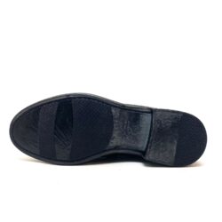 Brador ciabatta in vera pelle nera tinto capo. Tomaia in pelle con doppia fascia regolabile da fibbia in argento anticato.. Sottopiede fusbett foderato in pelle e suola gomma . 100% Made in Italy.