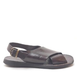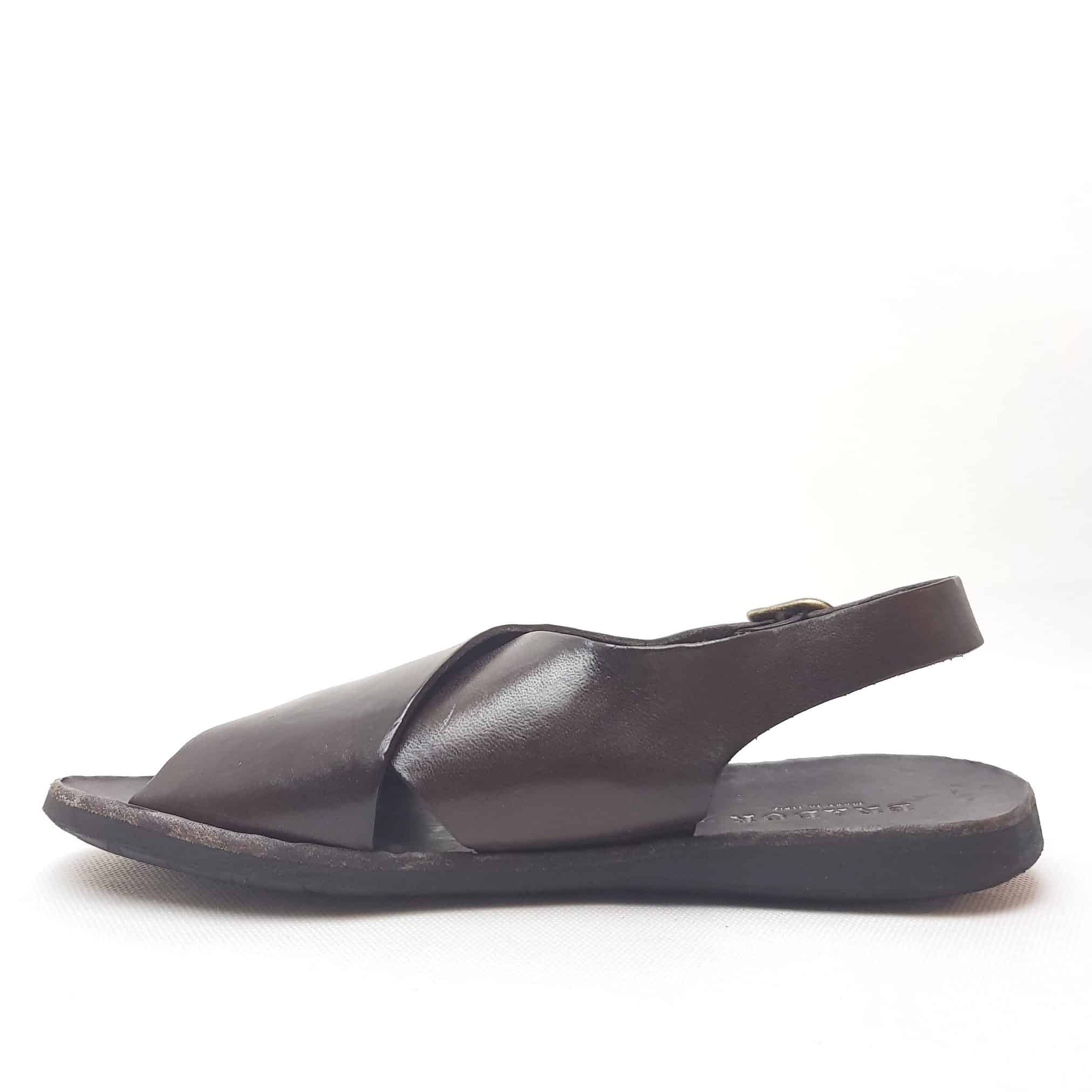 Brador sandalo in vera pelle tinto capo con fascia ad incrocio. Colore testa di moro. Fondo gomma. Sottopiede in cuoio. Made in Italy