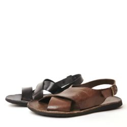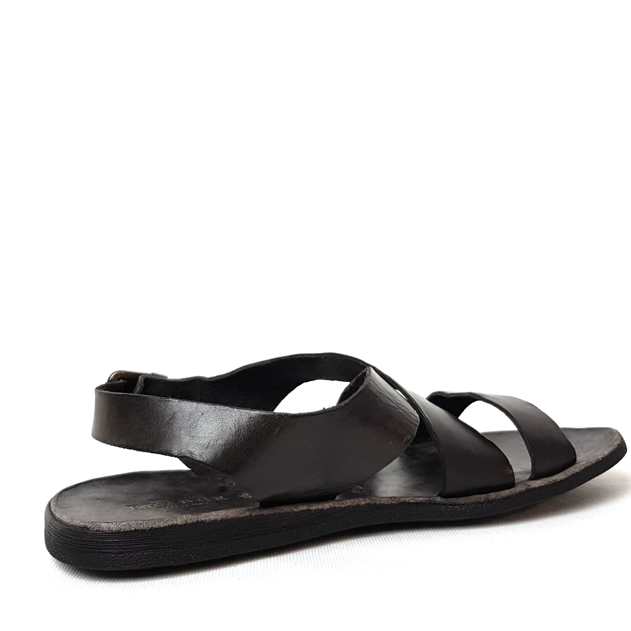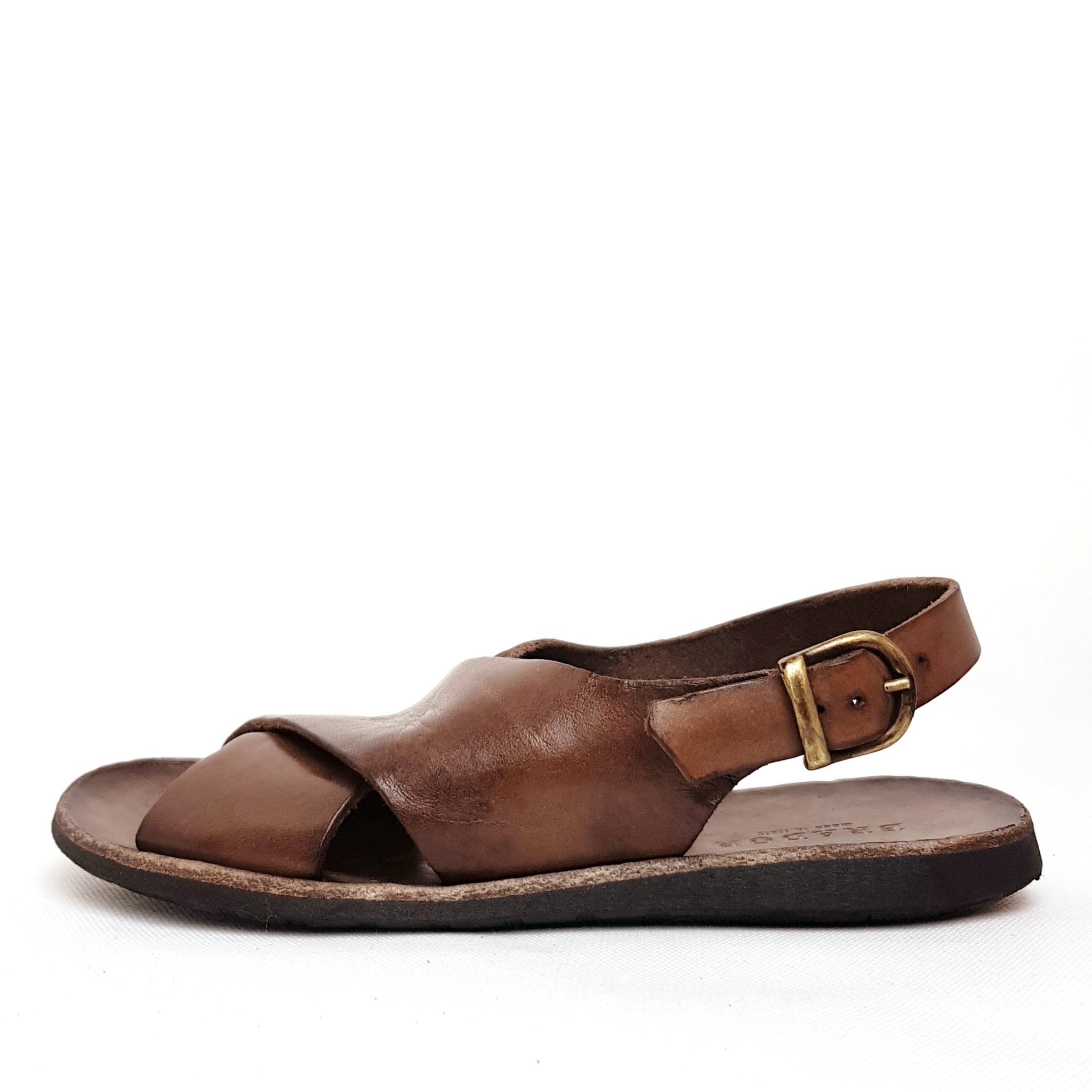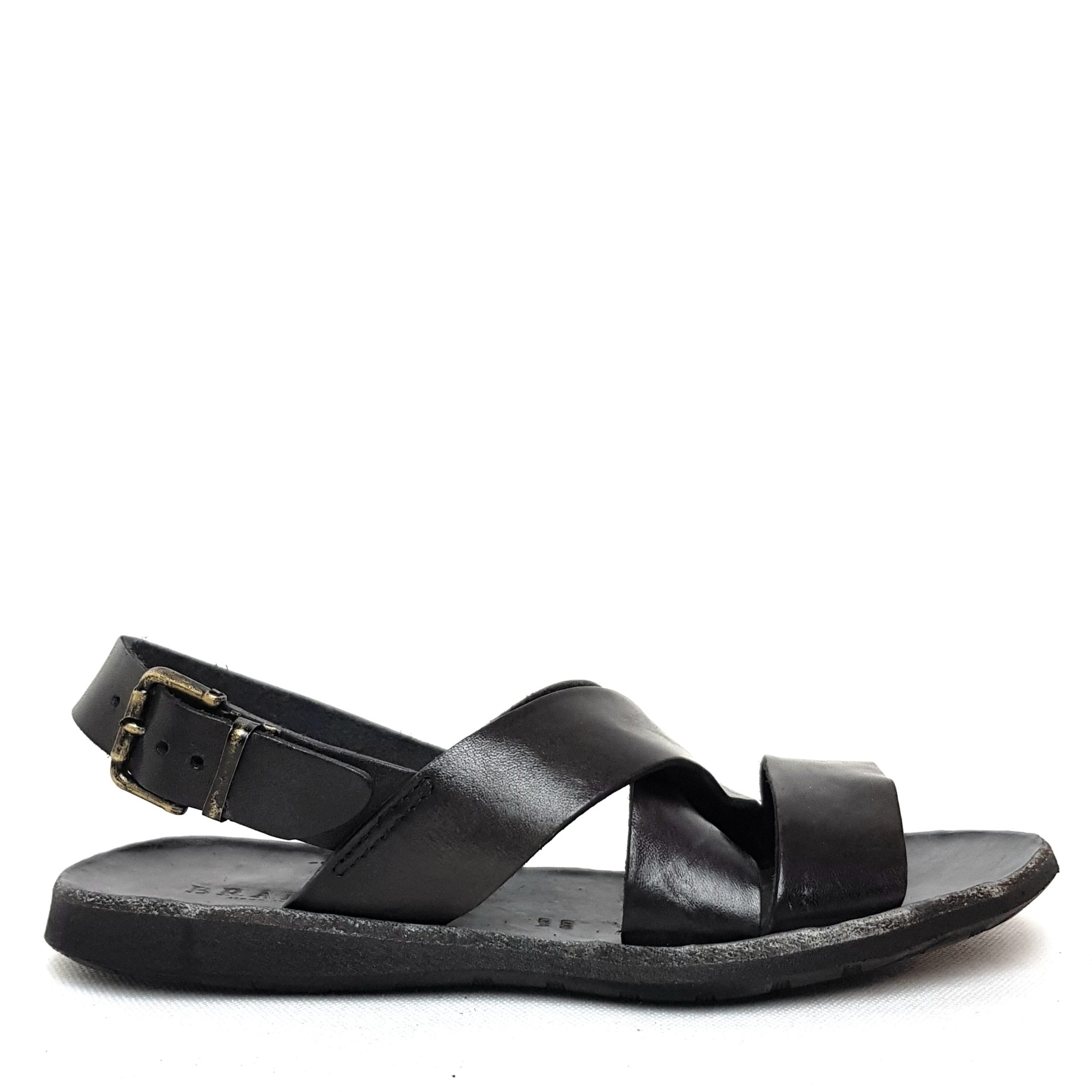 Sandalo in pelle fondo gomma. Allacciatura tramite fibbia.