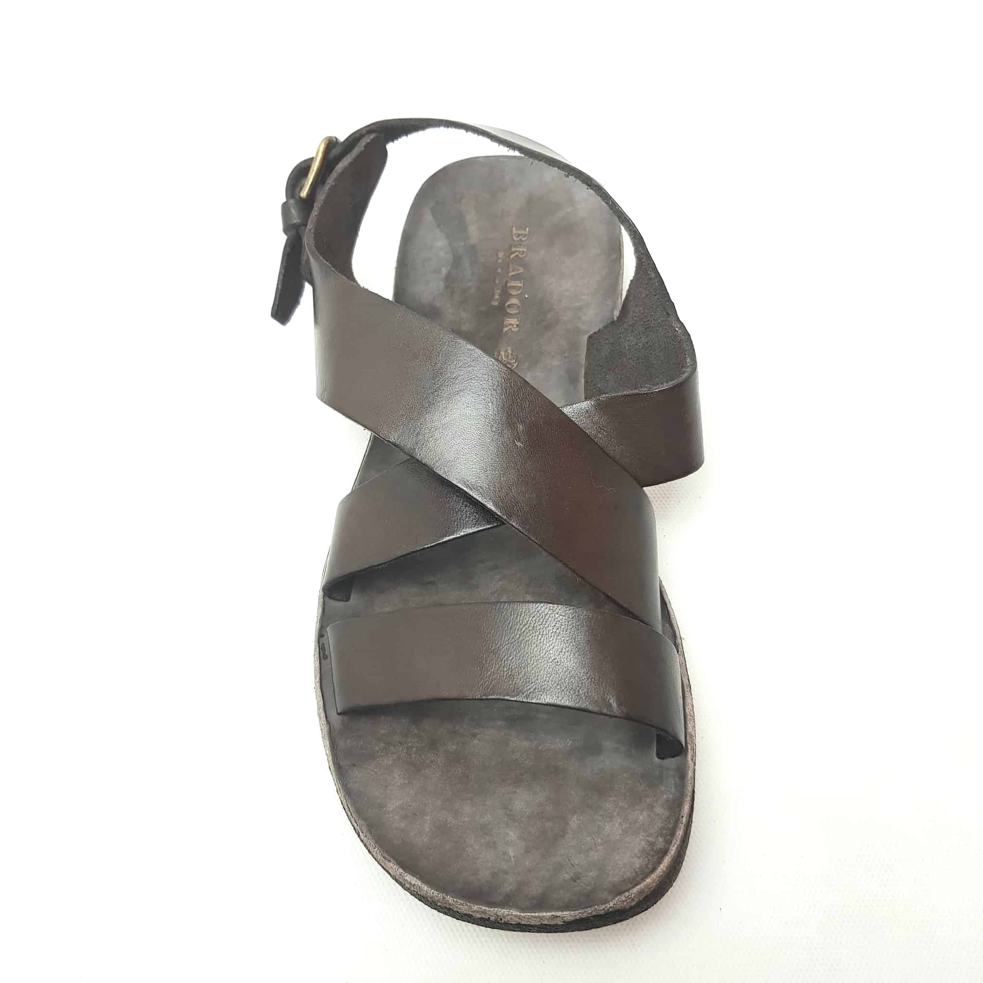 Brador sandalo uomo in vera pelle testa di moro. Doppia fascia lineare e a incrocio. Fondo gomma. Sottopiede in cuoio. Made in Italy