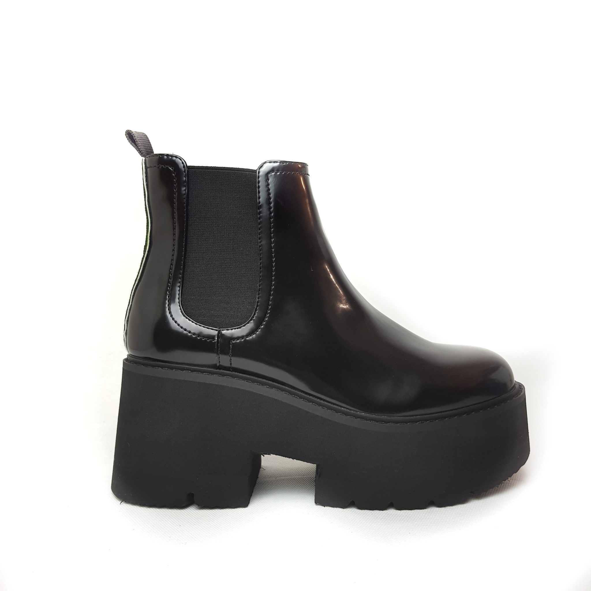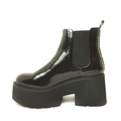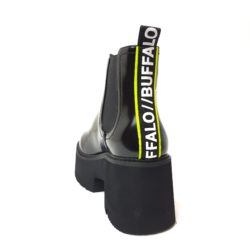 Buffalo Fita. Stivaletto modello Chelsea realizzato in similpelle lucida. Tallone logato con profilo giallo fluo. Inserto elastico sul lato per facilitare la calzata. Suola in gomma. Platform 7 cm.