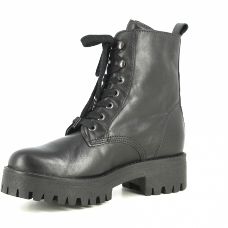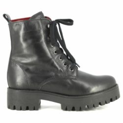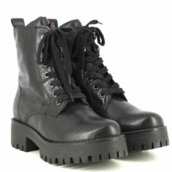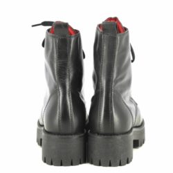 Buffalo Shadow anfibio in pelle nera spazzolata. Fodera in pelle. Allacciatura con stringa. Tacco gomma 4cm. Platform 2.5cm. Suola in gomma ( carrarmato).