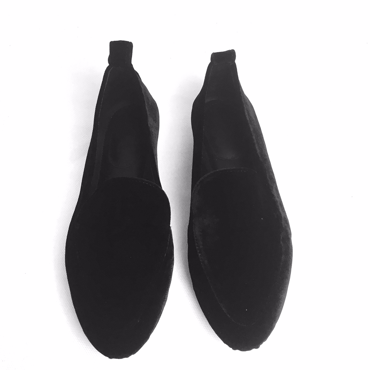 By A. Mocassino versione pantofola vera definizione: loafers, in velluto nero suola sottopiede imbottito, suola cuoio antiscivolo 100% Made in Italy.