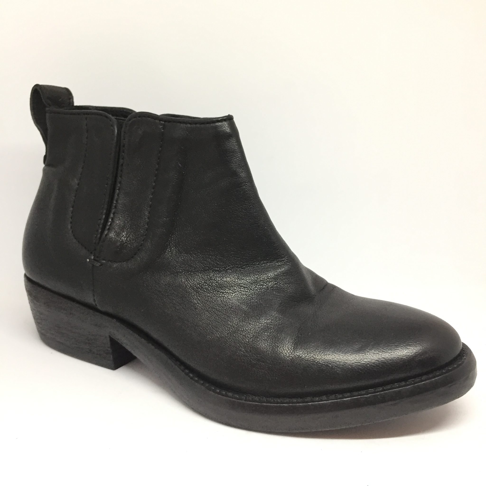 Stivaletto in pelle nera modello Chelsea con elastico laterale, suola in cuoio tacco cm 4.