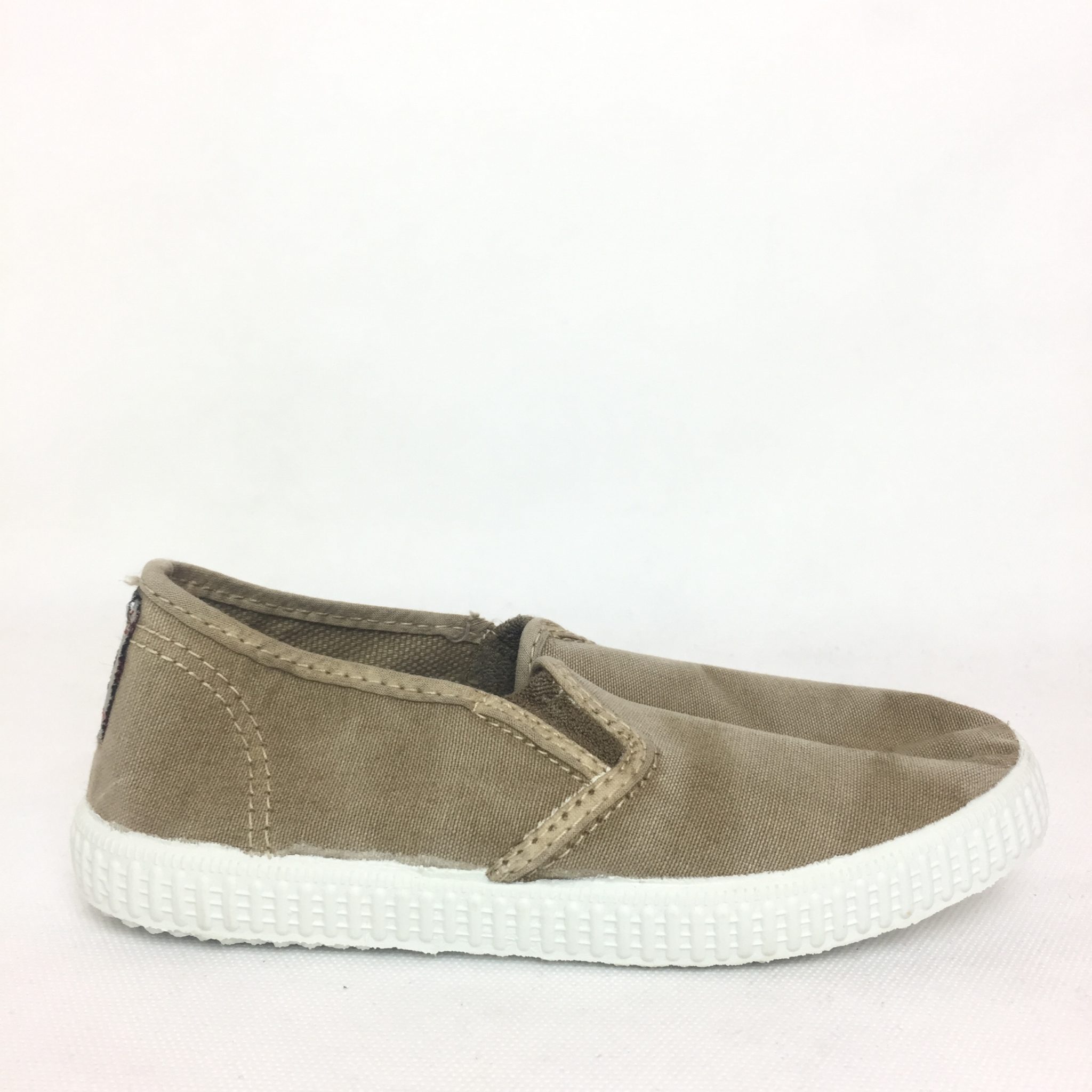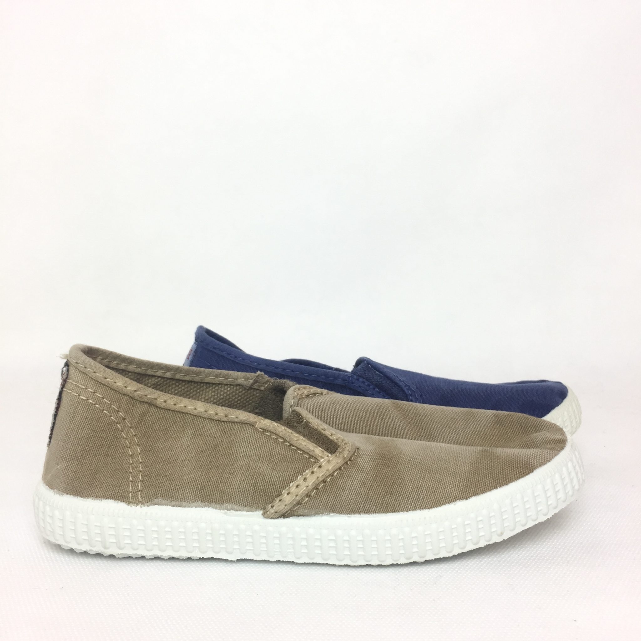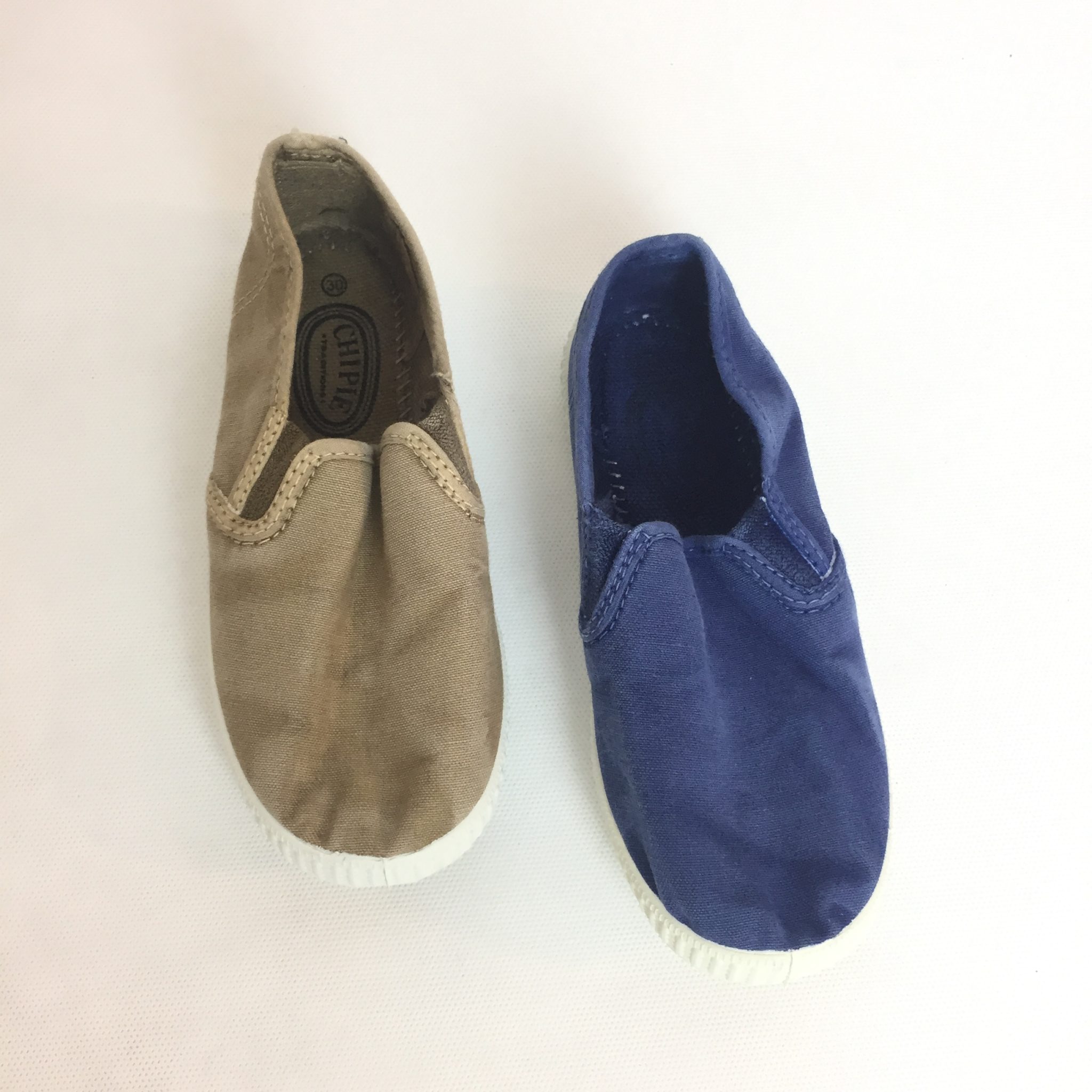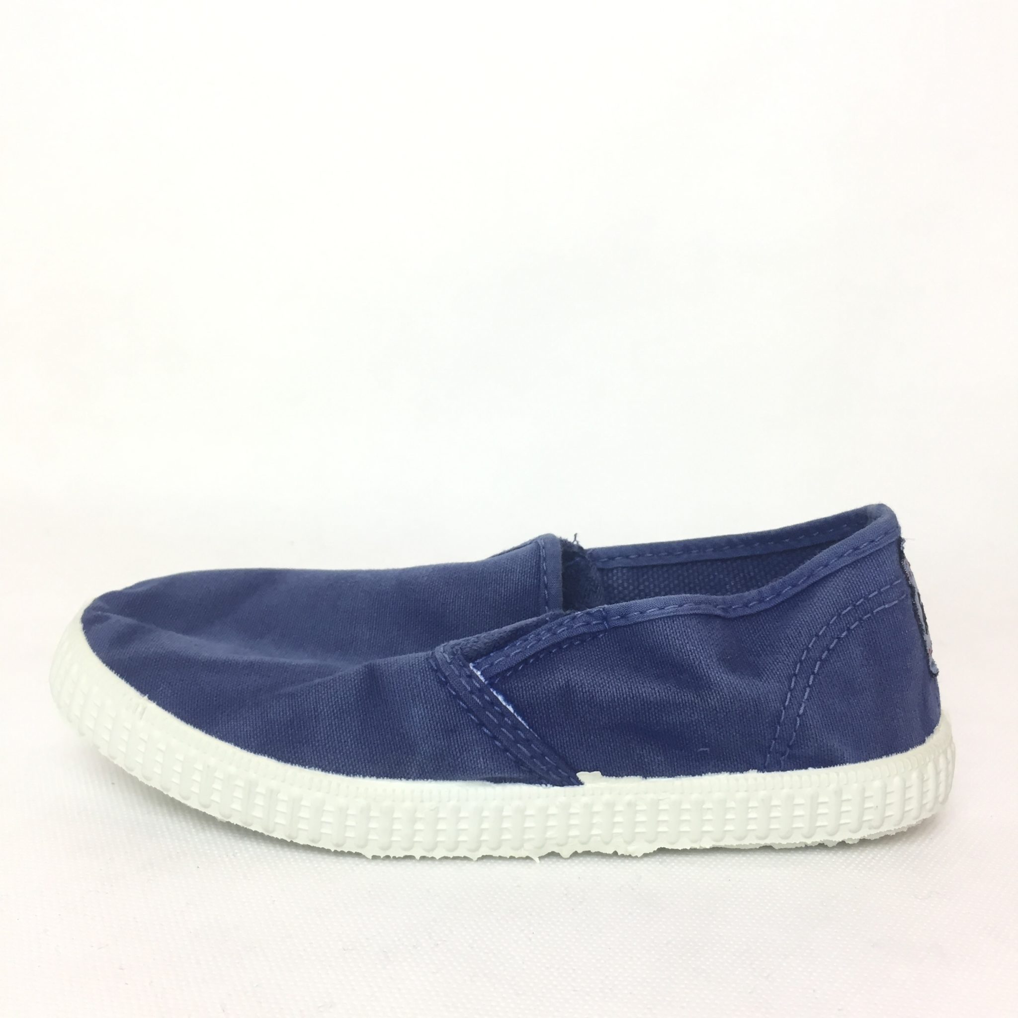 Slip on bimbo in tela profumata, suola in gomma bianca.