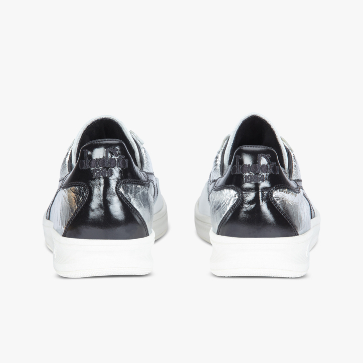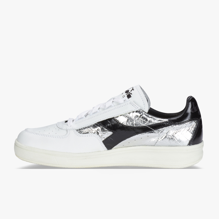 Diadora Heritage B. Elite ginnico in pelle silver crackle e bianca, allacciatura con stringa, suola in gomma.