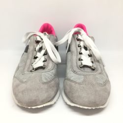 Ginnico donna in tessuto, colore grigio melange con dettagli rosa fluo. Plantare anatomico estraibile.