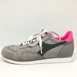 Ginnico donna in tessuto, colore grigio melange con dettagli rosa fluo. Plantare anatomico estraibile.