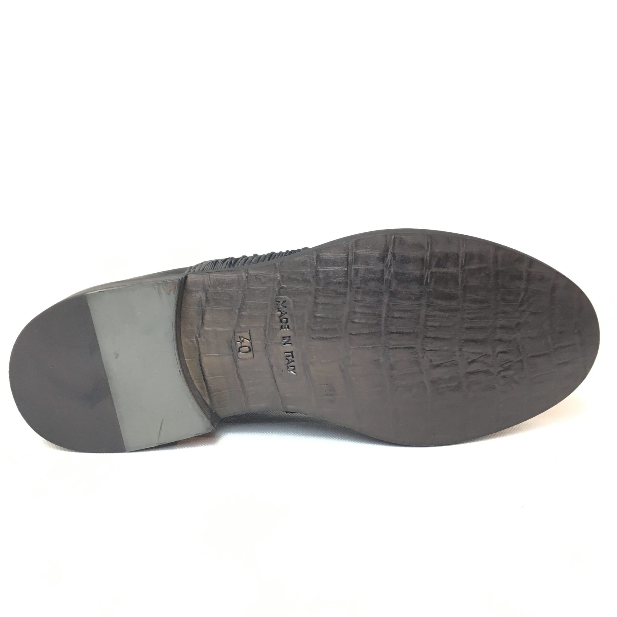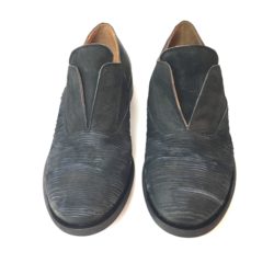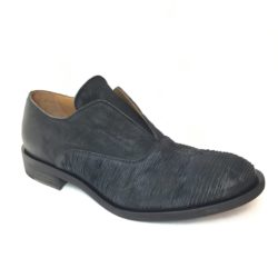 Ernesto Dolani, scarpa uomo senza lacci in pelle nera scamosciata laserata, suola in cuoio, 100%Made in Italy