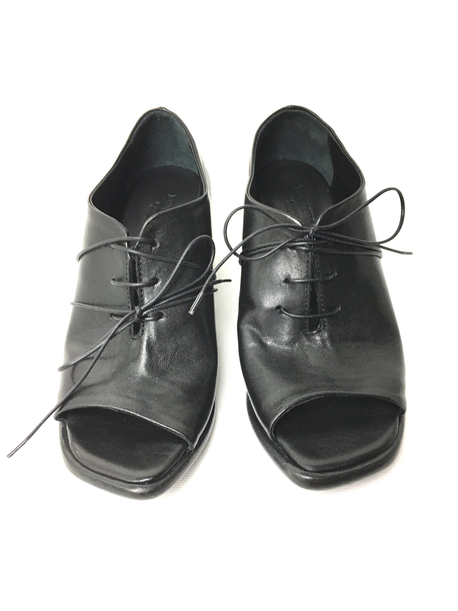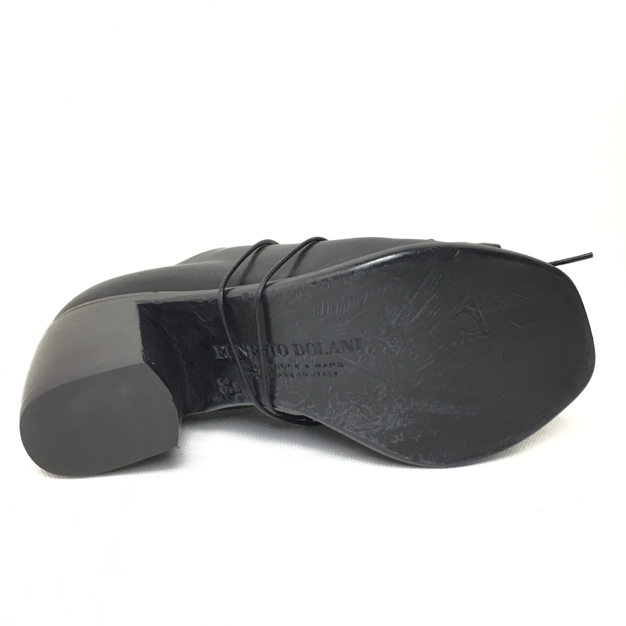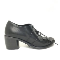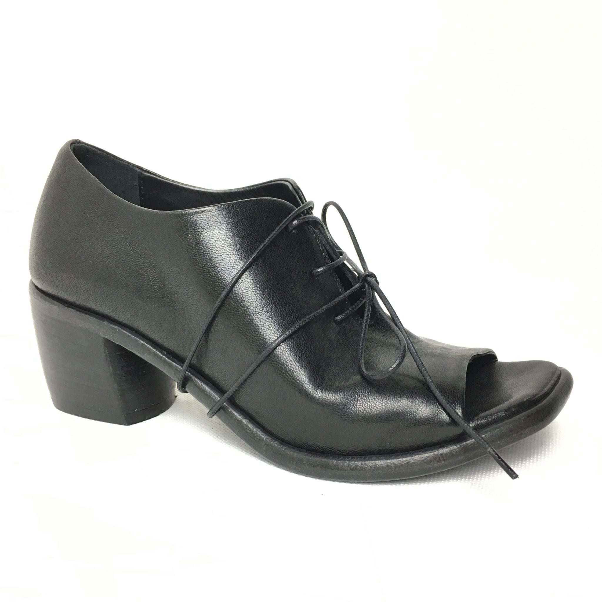 Ernesto Dolani francesina opentoe in vera pelle, colore nero. Allacciatura con stringa. Tacco 5,5 cm. Made in Italy. Fondo cuoio