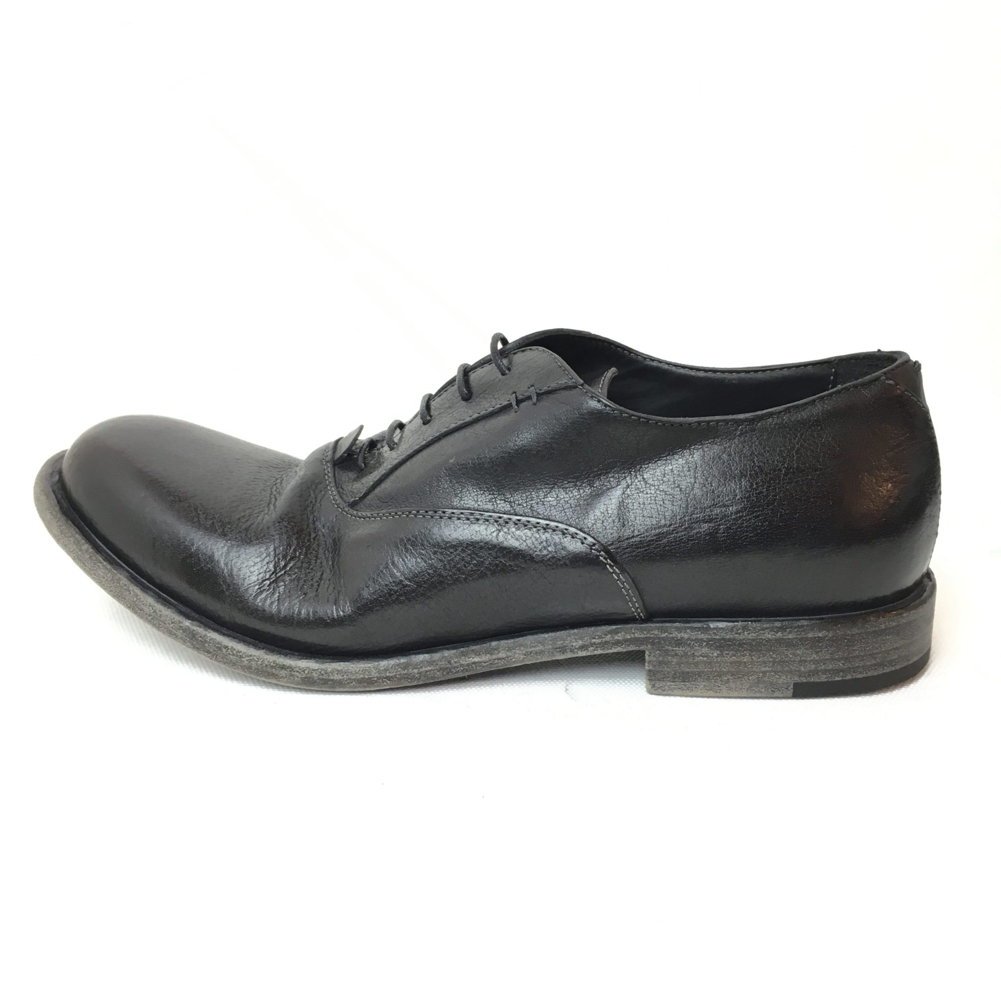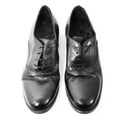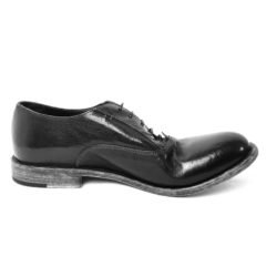 Ernesto Dolani, scarpa da uomo in vera pelle nera, allacciatura tramite stringa. Fondo cuoio. Made in Italy