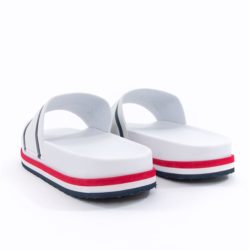 Fila slides in ecopelle bianca con fascia logata . Zeppa platform 4 cm. Suola in gomma.