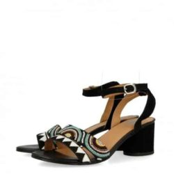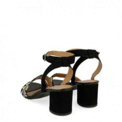 Gioseppo, sandali in pelle scamosciata nera. Fascia con dettaglio perline stile azteco. Cinturino alla caviglia . Fondo gomma. tacco 5,5 cm.