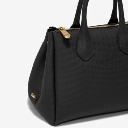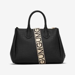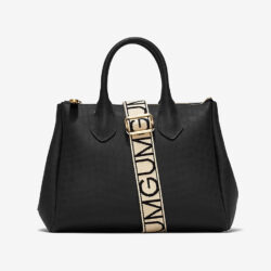 Borsa a mano di manifattura italiana modello Fourty misura media in vinile nero. Fantasia cocco con motivo effetto coccodrillo all over. Bottoni a pressione laterali per regolare l”ampiezza della borsa. Manici rigidi in PVC. Logo GUM applicato lateralmente. Ganci per tracolla applicati lateralmente. Chiusura con cerniera in nikel e tira zip con scritta Gum incisa. Tracolla logata in tessuto intrecciato regolabile e removibile. Misure borsa: 30 x 23 x 15 cm. Lunghezza tracolla: 110 estendibile fino a 125 cm circa.