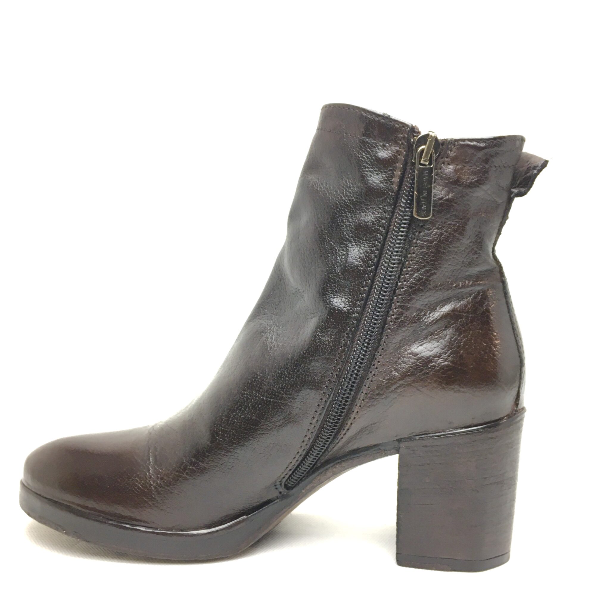 Hundred100, tonchetto testa di moro in pelle tinto in capo,con doppia zip, fodera pelle e sottopiede in memory. Suola cuoio e gomma, tacco fasciato cuoio cm 6,5.100%Made in Italy