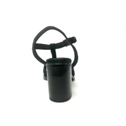 Sandalo in pelle nabuk black con fibbie brunite regolabili. Sottopiede imbottito, tacco cm 7, suola cuoio.100% Made in Italy