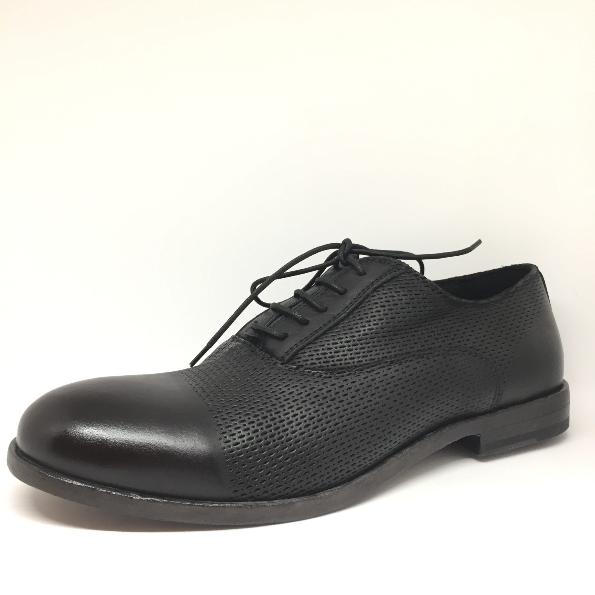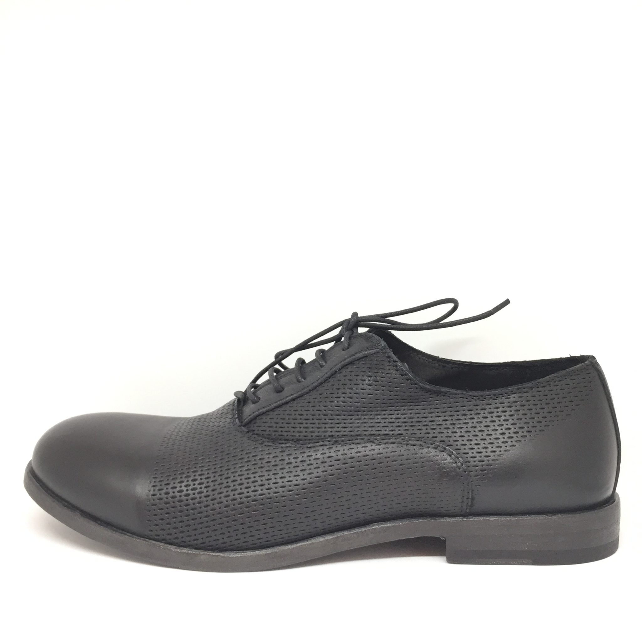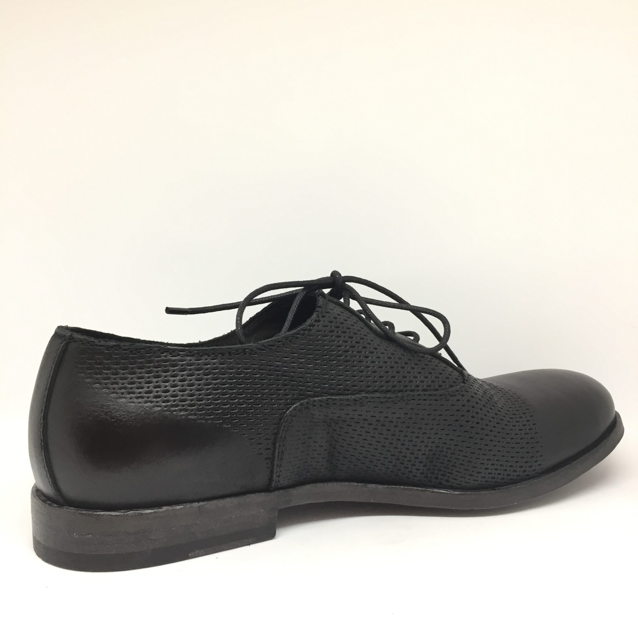 Allacciato uomo in pelle laserata nera. Fondo cuoio. Calzata abbondante. Made in Italy.