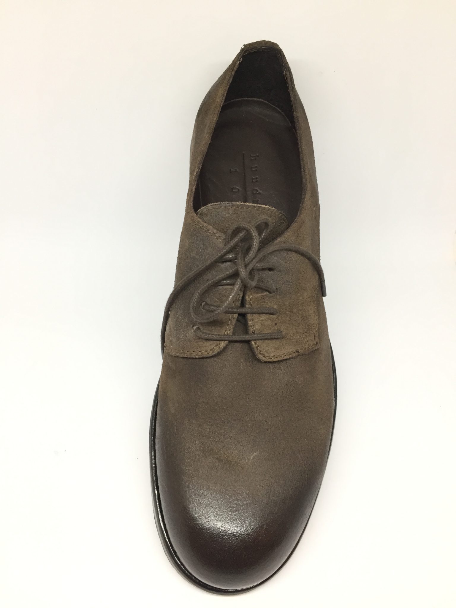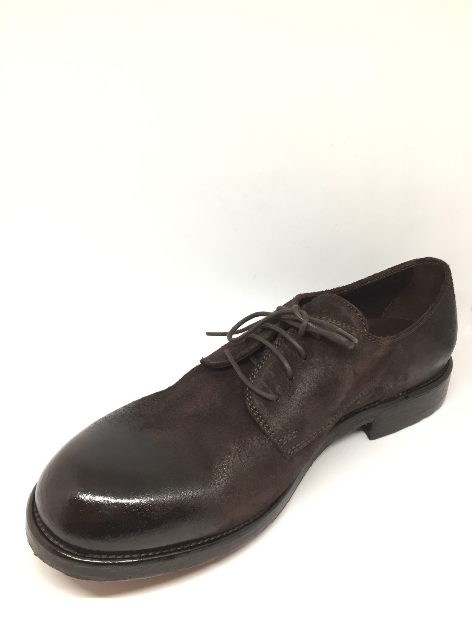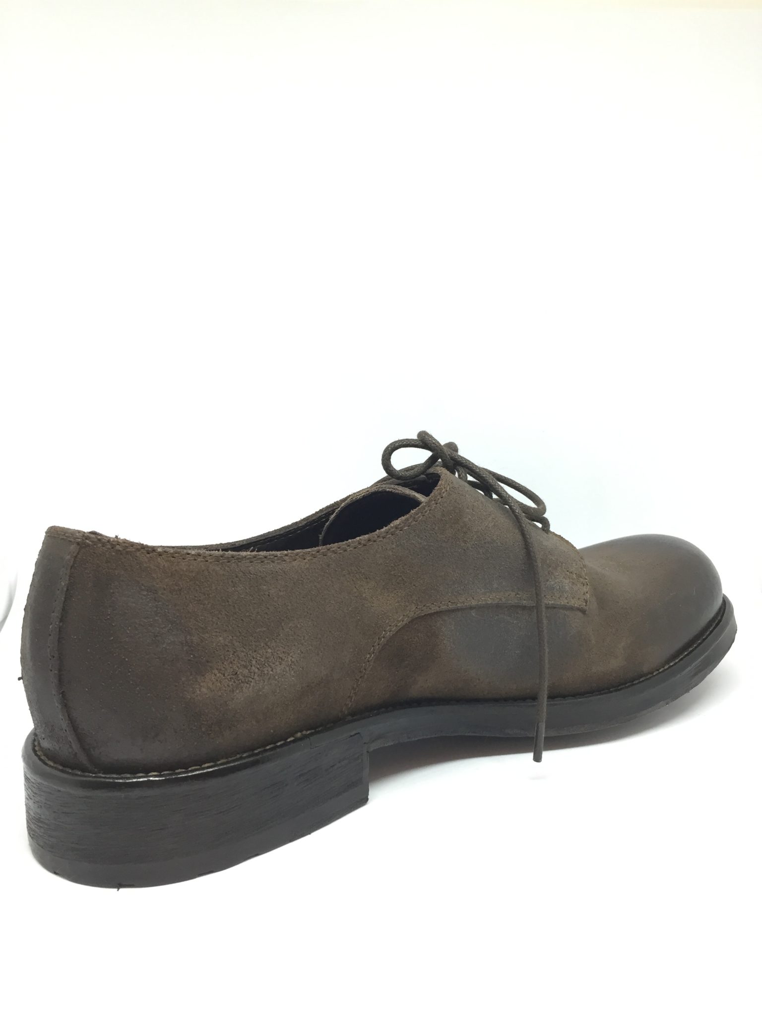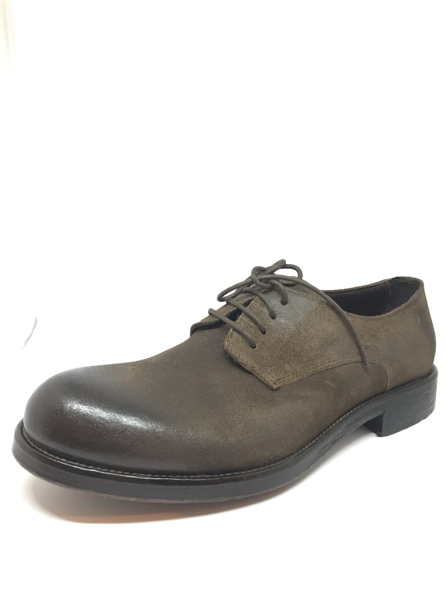 Allacciato in crosta di pelle. Fondo gomma/cuoio.100% made in Italy. Calzata abbondante. Disponibile nelle varianti colore taupe e testa di moro.