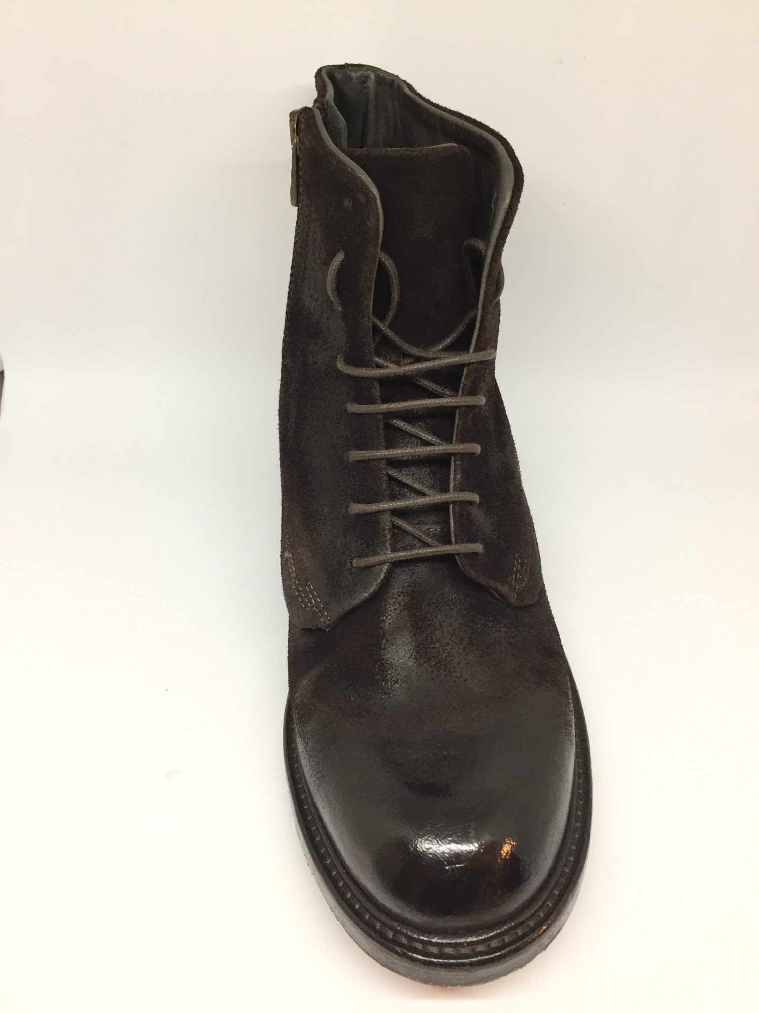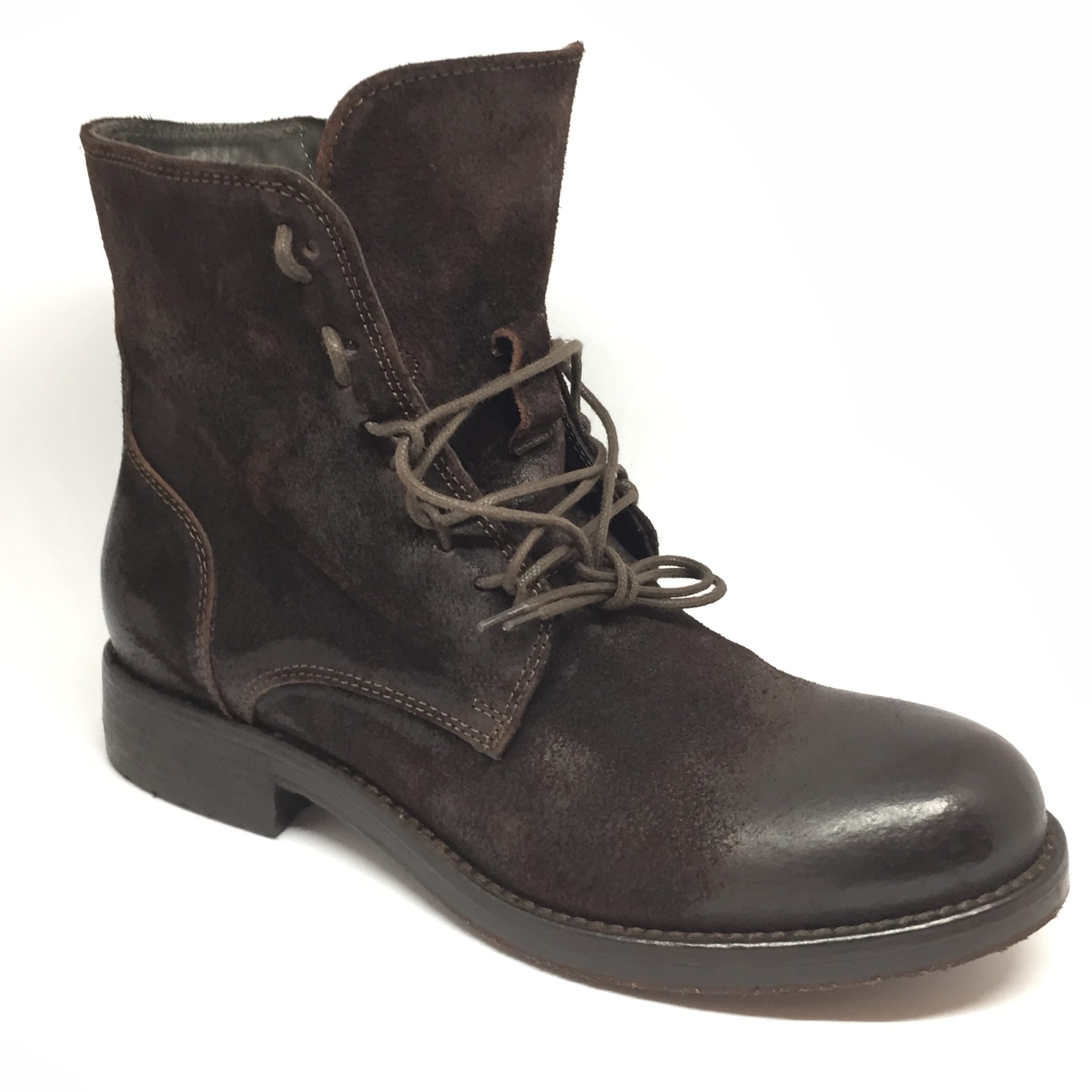 Scarponcino uomo in crosta di pelle. Fondo gomma/cuoio.100% made in Italy. Calzata abbondante.