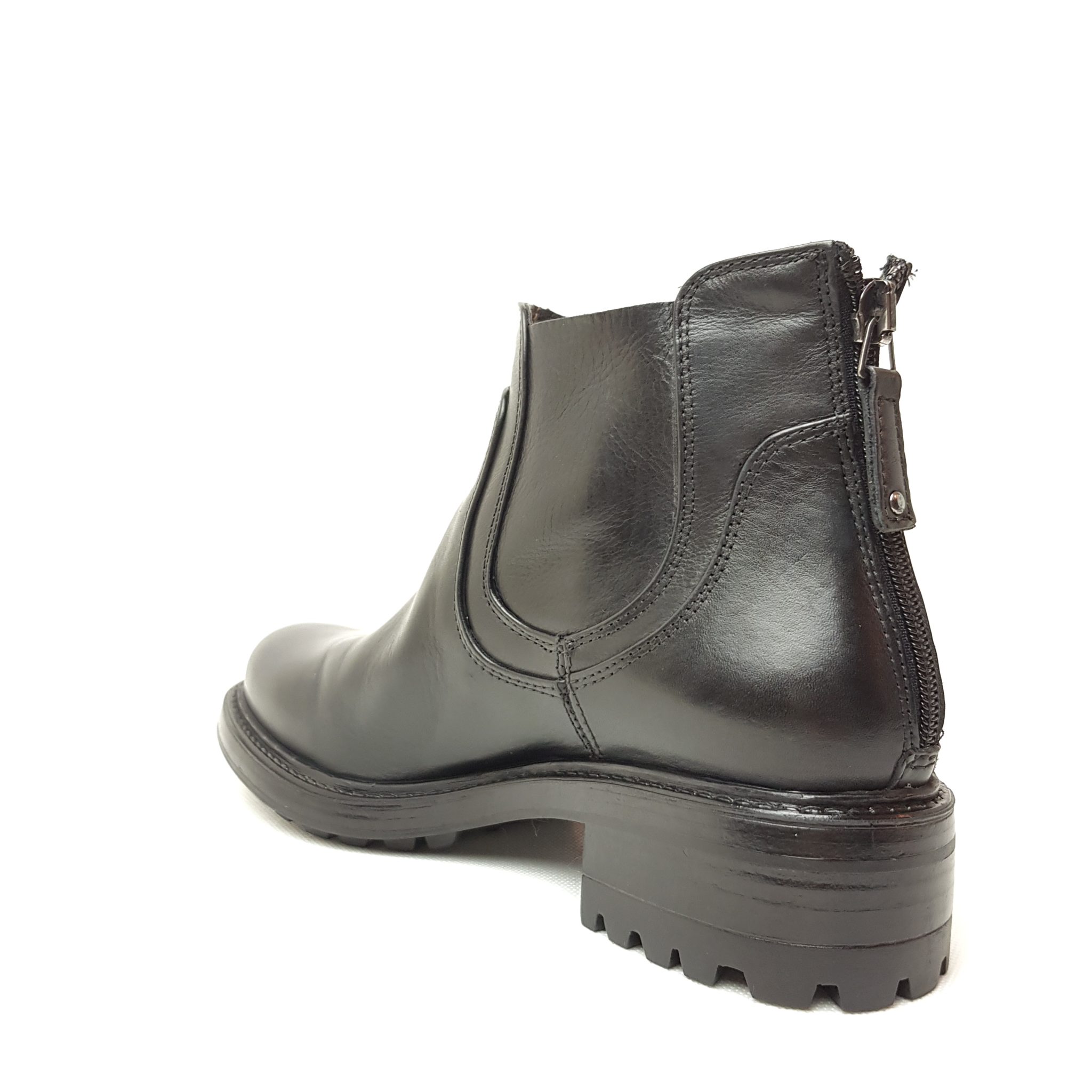 Hundred100 stivaletto in pelle nero, modello beatles. Zip sul tallone. Fondo gomma. Tacco 3,5 cm