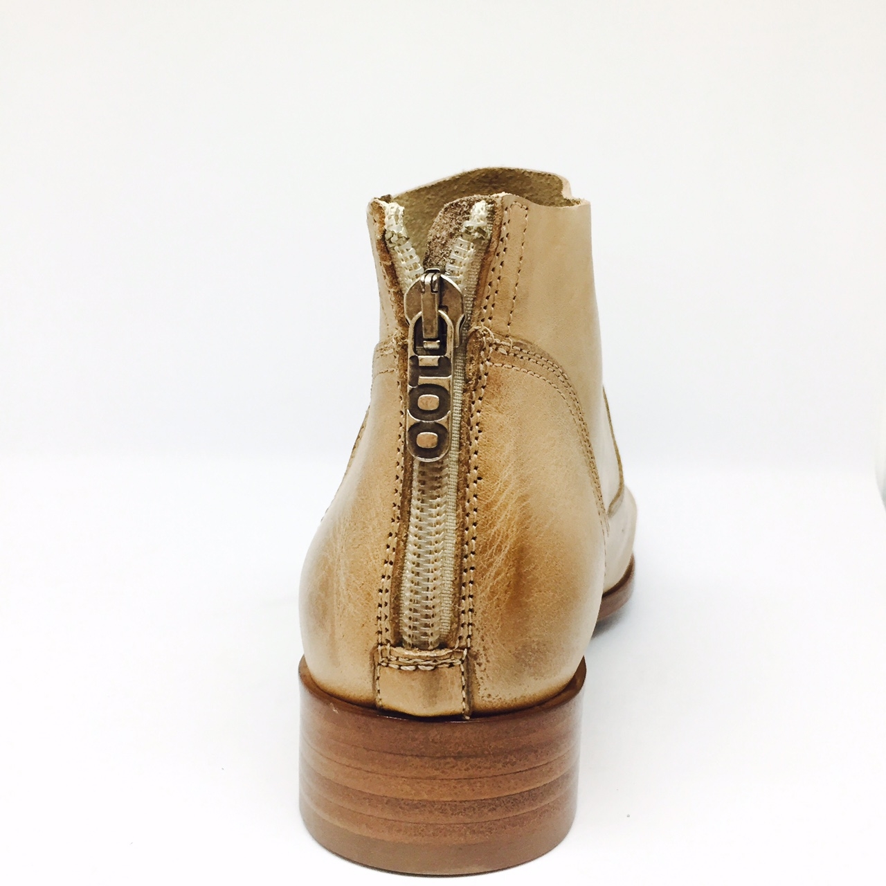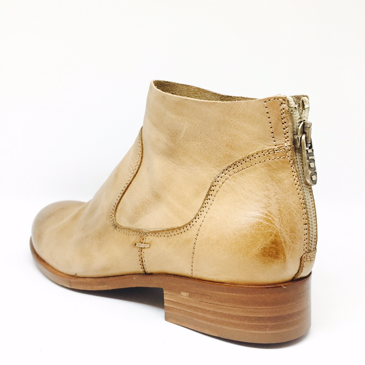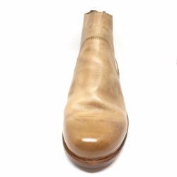 Stivaletto P/E in pelle color sabbia, taglio vivo. Suola in cuoio. Made in Italy. Calzata abbondante.