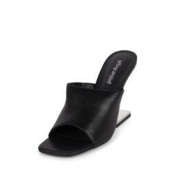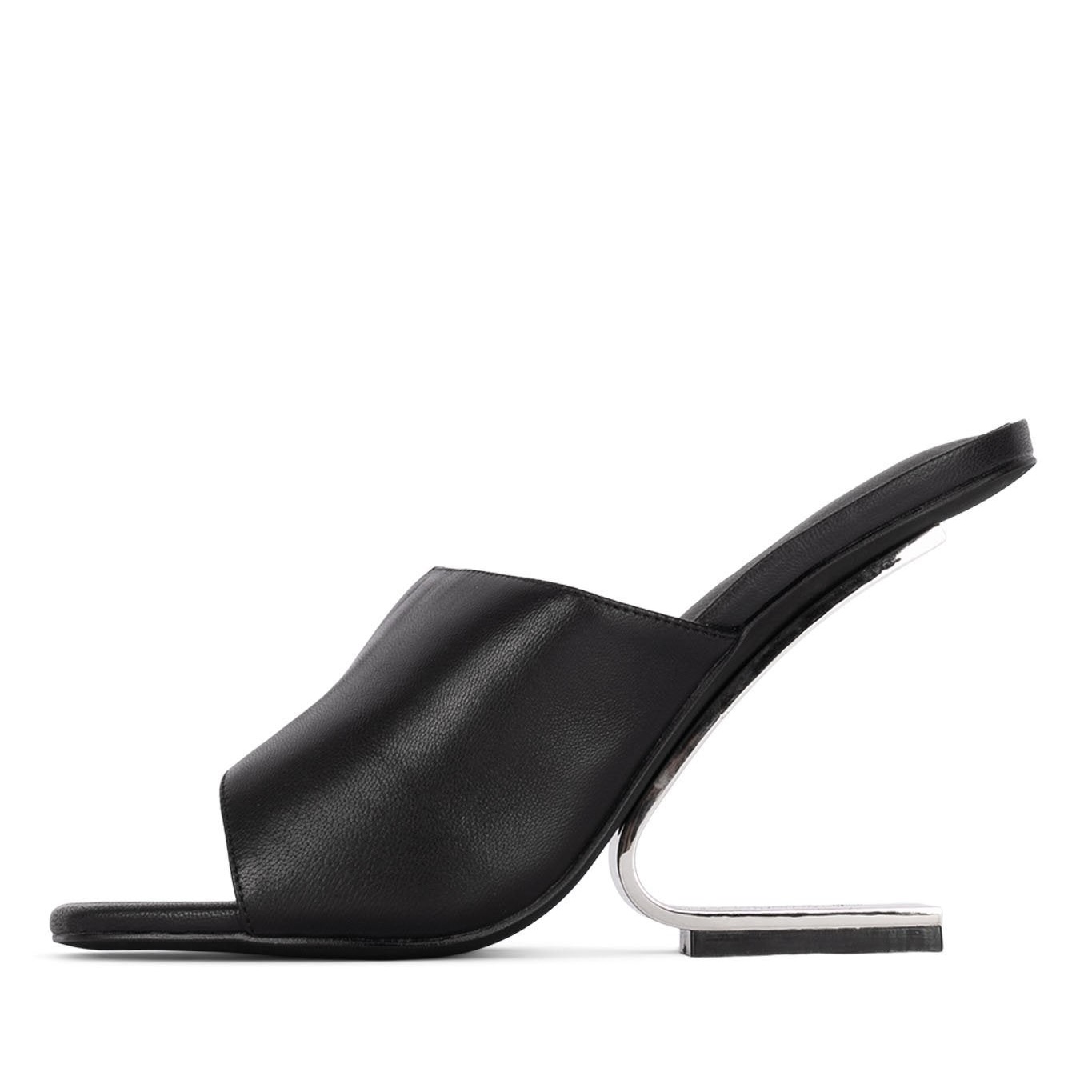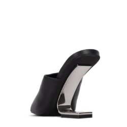 Jeffrey Campbell, mules in vitello nero con sottopiede soft e suola gomma. Tacco metallico cromato argento quasi invisibile ha cm 10