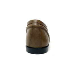 Morbidissimo mocassino flat in pelle fango, con accessorio dorato, sottopiede imbottito e suola in gomma.