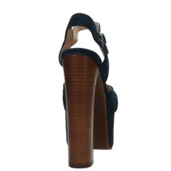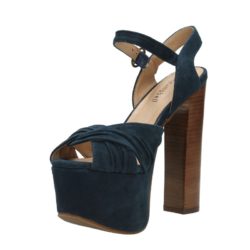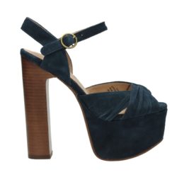 Sandalo in suede con fascia a nodo. Altezza 16 cm. Plateau 5,5 cm.