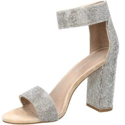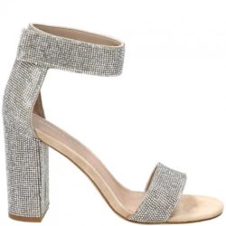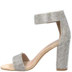 Jeffrey Campbell modello Lindsay. Sandalo crystal disponibile in nude e pewter. Tacco a cubo, rivestito, 9 cm cm. Cinturino regolabile alla caviglia con velcro. Fondo eco cuoio.