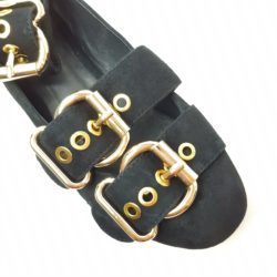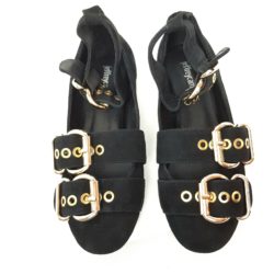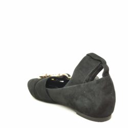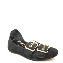Ballerina in suede nera. Doppia fibbia regolabile in metallo dorato. Laccio alla caviglia removibile. Fondo gomma. Sottopiede imbottito.