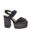 Tronchetto in ecopelle nera. Allacciatura tramite cerniera laterale. Tacco: 11,5 cm Plateau: 2 cm. Fondo gomma.