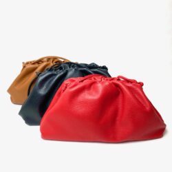 L.G.BAGS borsa pelle arricciata nera-cuoio-red