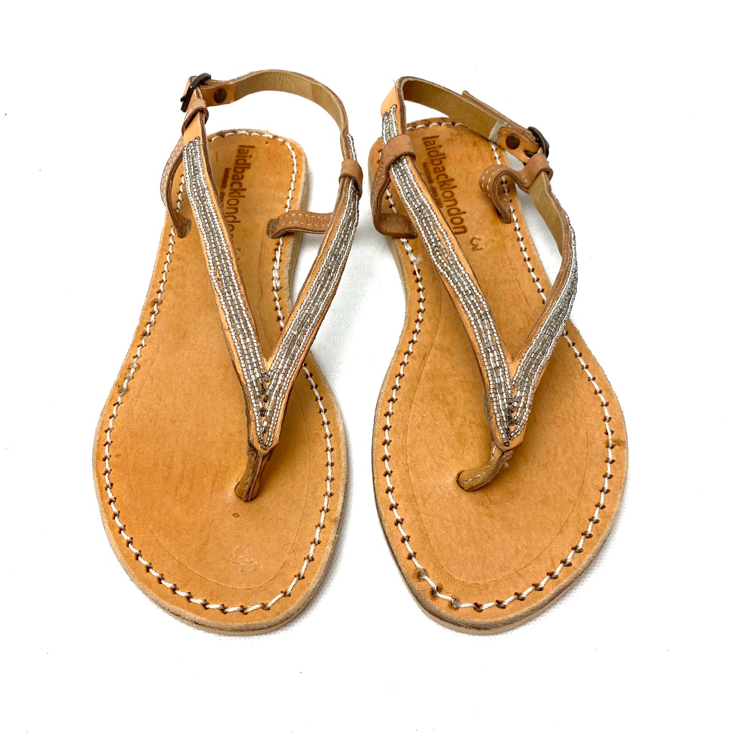 Laidbacklondon art. ASTER sandalo flat infradito cuoio silver