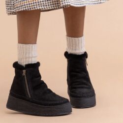 Laidbacklondon art. SETSU PLATFORM stivaletto nero in pelle suede e montone