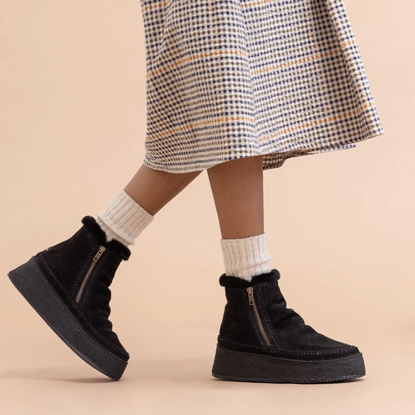 Eleva il tuo stile a nuovi livelli con un tacco platform combinato con il nostro iconico design Setsu. Realizzato a mano con la stessa cura, presenta delicati dettagli all’uncinetto in una straordinaria combinazione di colori. Con tomaia in pelle scamosciata, fodera in shearling e soletta in shearling, questi stivali offrono una vestibilità comoda, simile a un guanto, mentre la suola antiscivolo per esterni rende questi stivali sia chic che pratici.