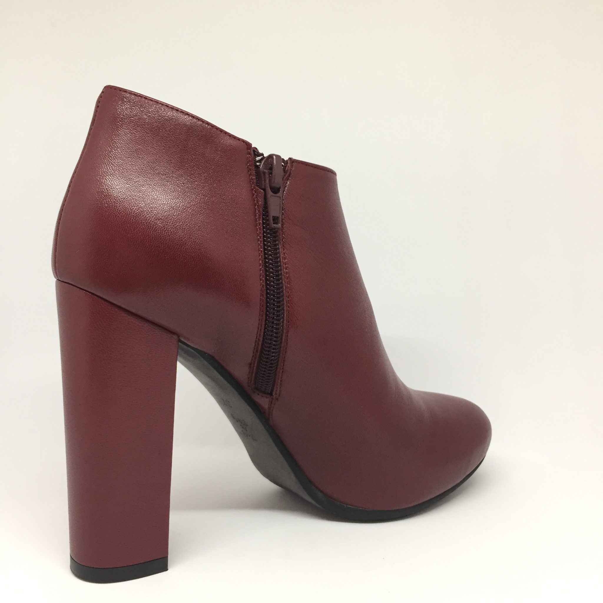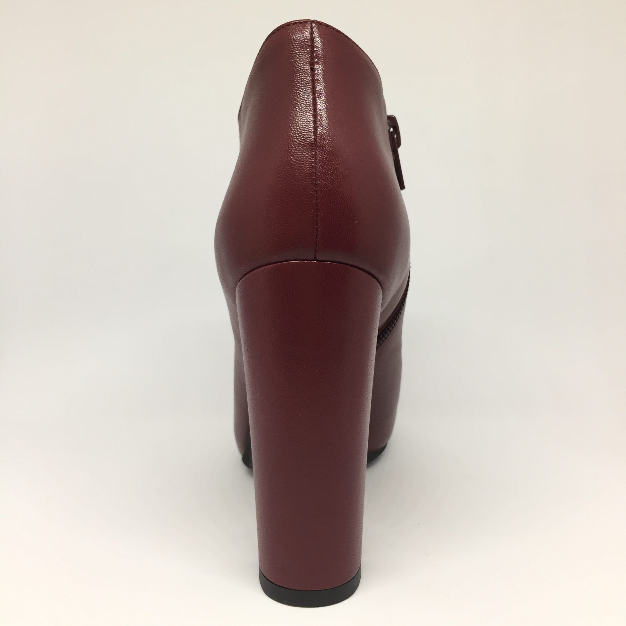 Tronchetto in nappa bordeaux. Altezza tacco 10 cm, platform 2 cm.
