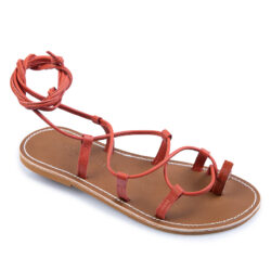 Il sandalo in pelle vacchetta mattone. presenta un design alla schiava con un elegante anello al dito anulare e lacci lunghi da legare alla caviglia o da intrecciare lungo il polpaccio. La sua versatilità lo rende perfetto per ogni occasione, sia che tu stia creando un outfit casual o elegante. I sandali alla schiava donano quel tocco di originalità che renderà il tuo look davvero speciale. sottopiede in cuoio e suola gomma flessibile-