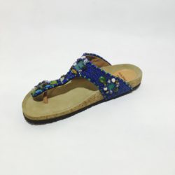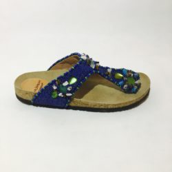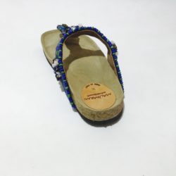Maliparmi, infradito con fondo fusbett di sughero anatomico foderato in pelle scamosciata, ricamato a mano con perline come da foto. Suola gomma