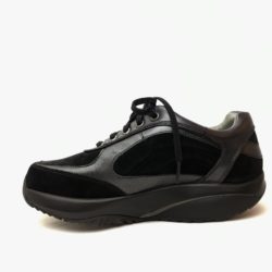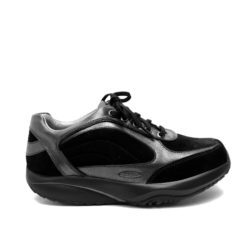 Scarpa ginnica con allacciatura stringata, tomaia in pelle scamosciata e non, questa scarpa può essere comoda per tutta la giornata. Suola in gomma con la tecnologia MBT