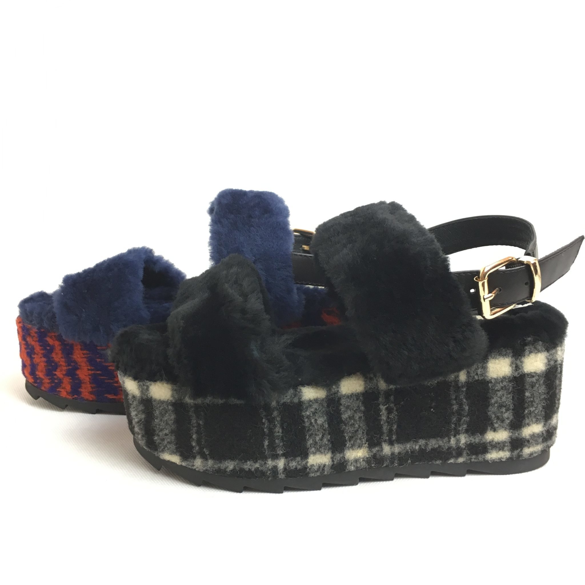 Movie’s sandalo in pelliccia dettaglio zeppa in tessuto pied de puole
