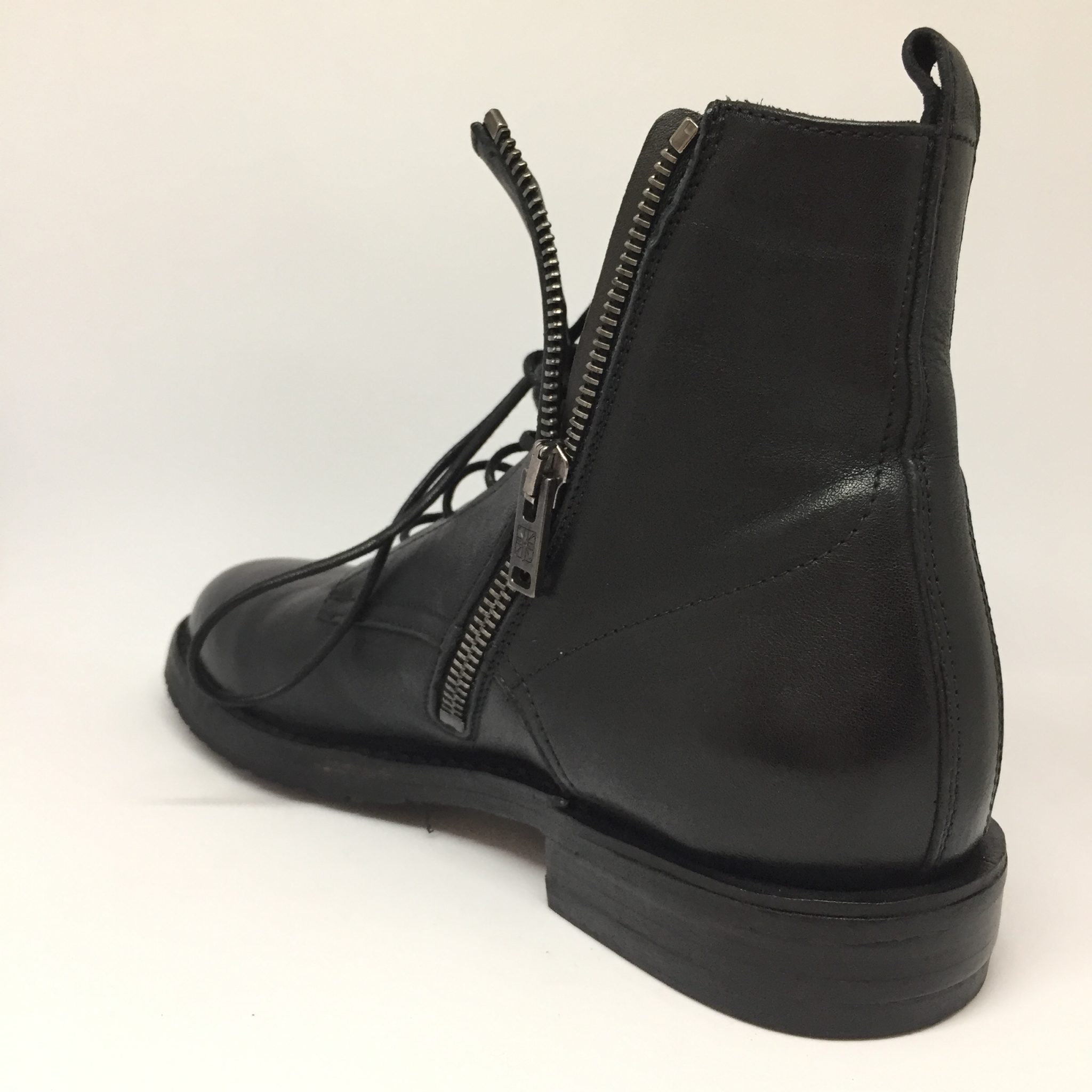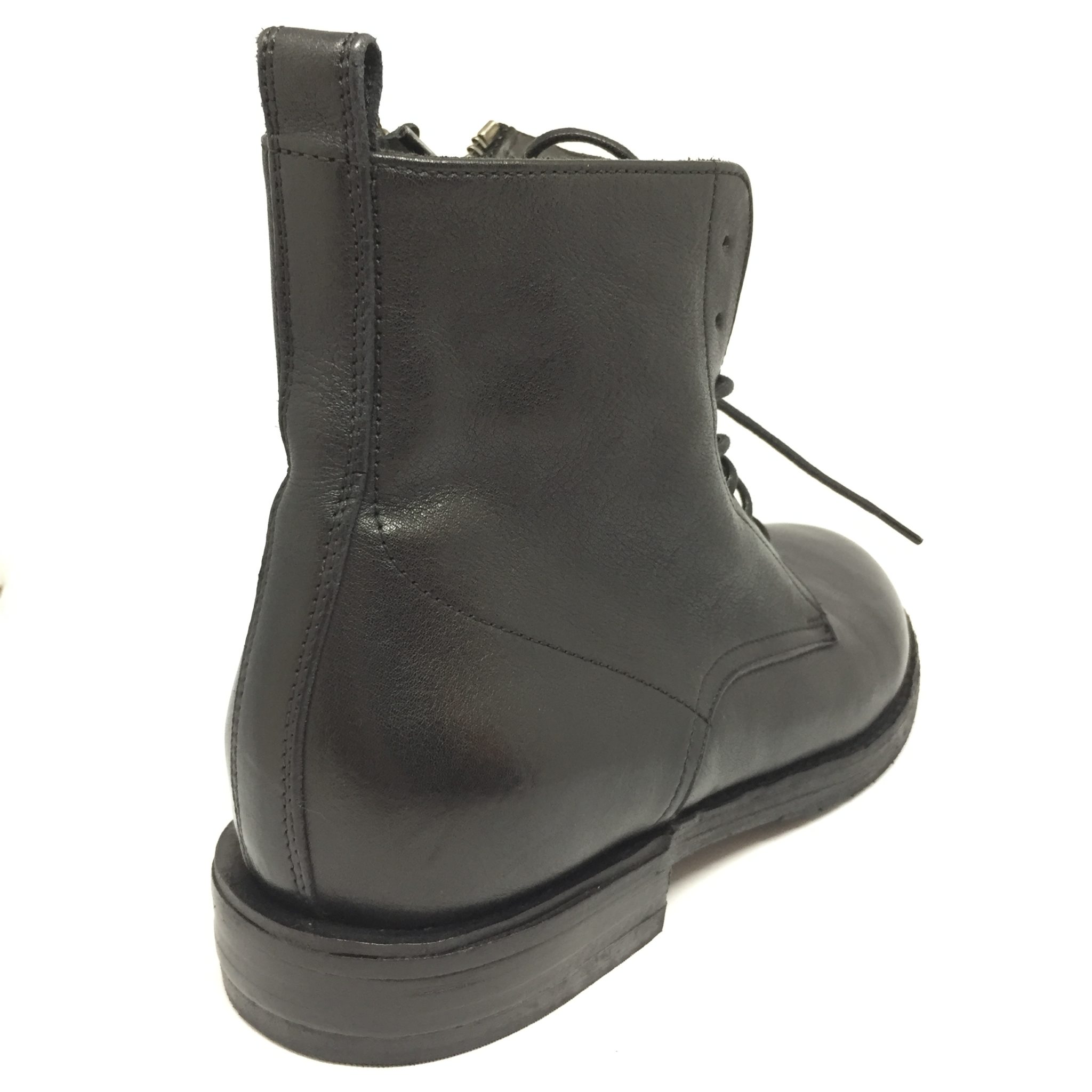 Pantanetti, anfibio nero, in pelle umbro con stinghe + zip, suola cuoio e gomma 100% Made in Italy