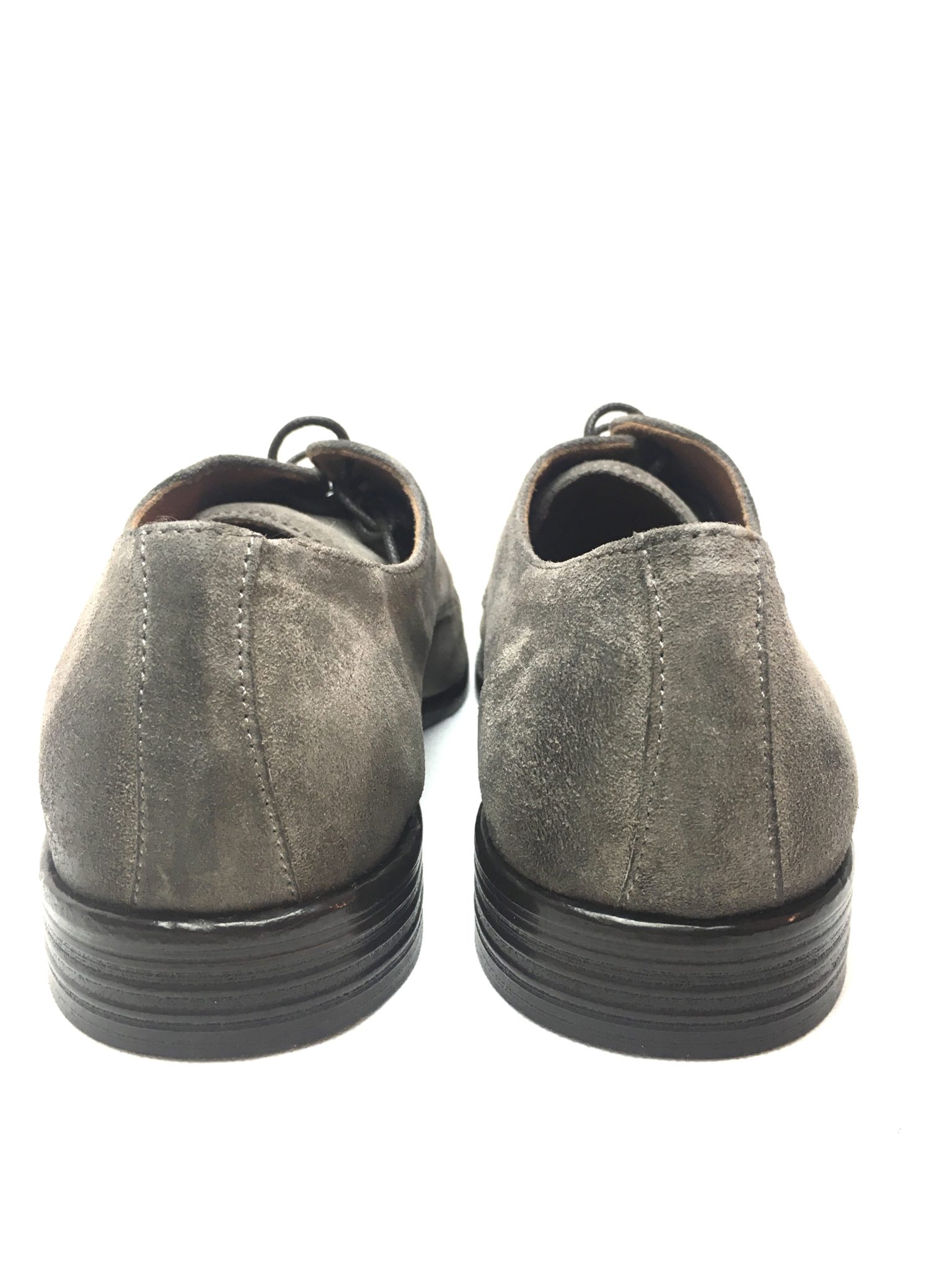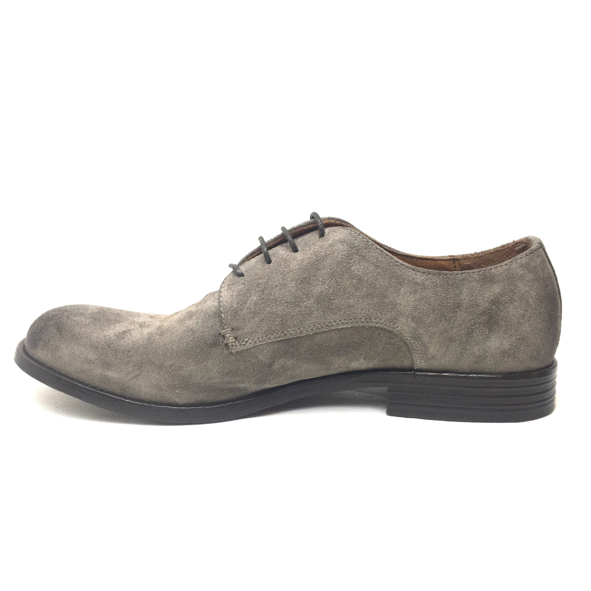 Pawelk’s 19016. Scarpa uomo allacciata 4 fori in vera pelle scamosciata. Colorazione:taupe. Fondo cuoio. Made in Italy