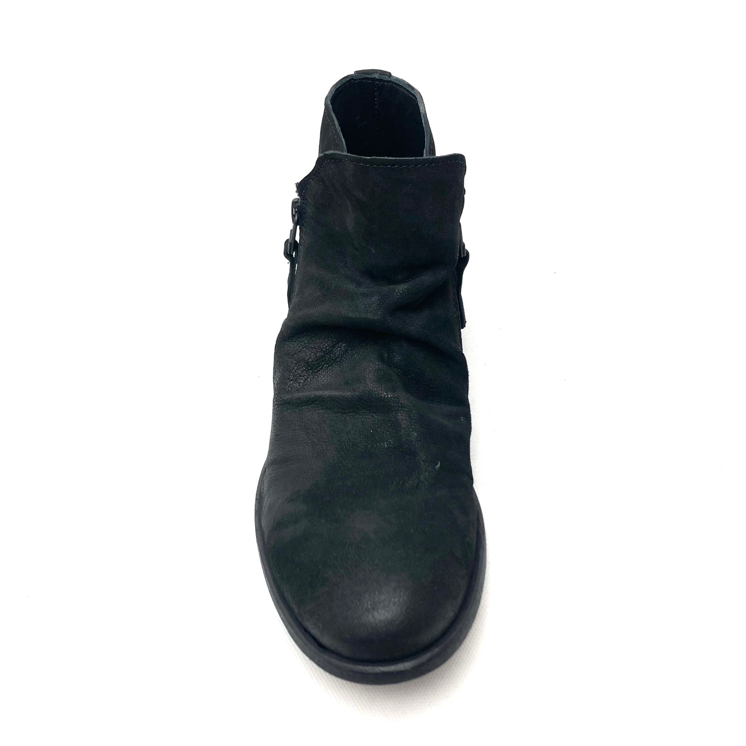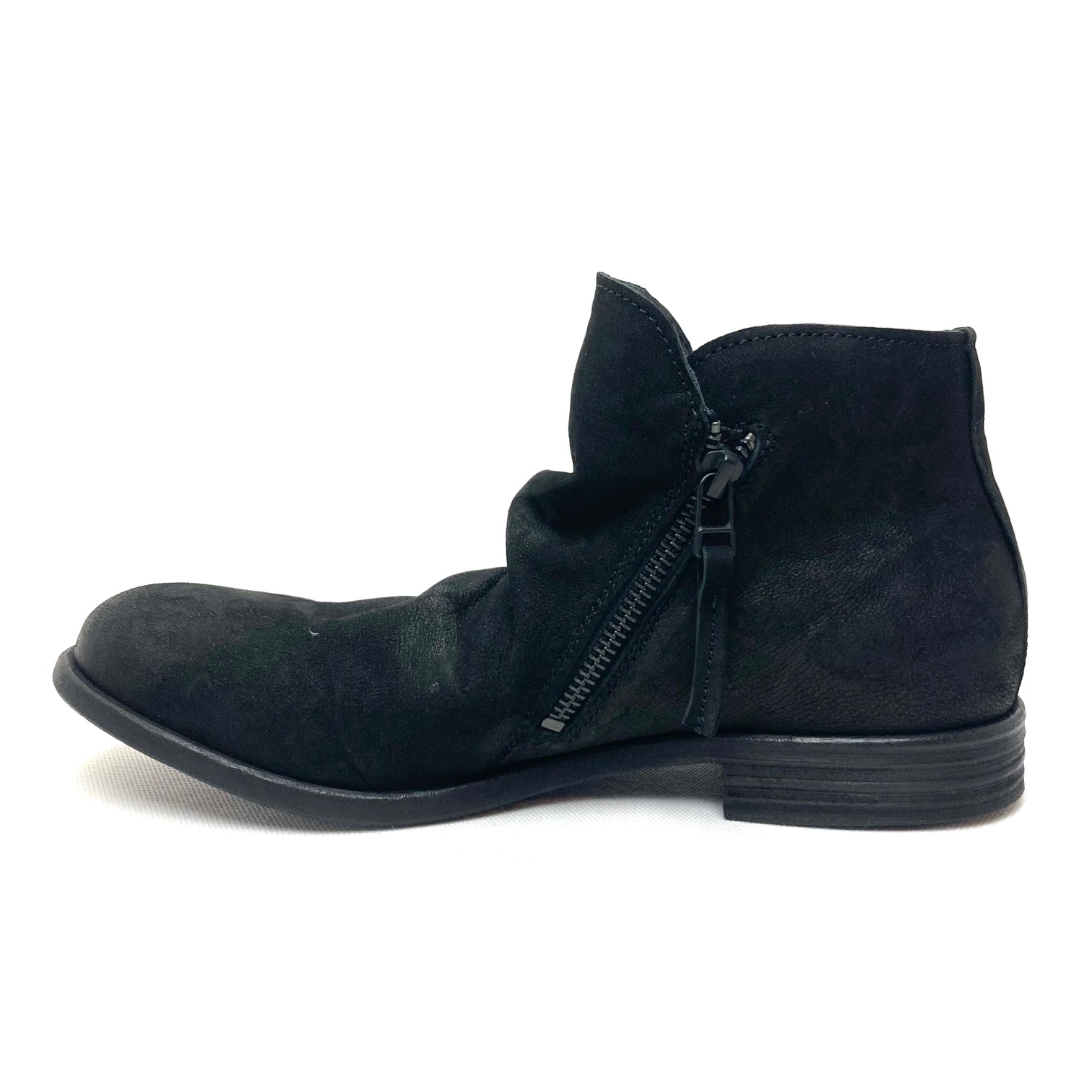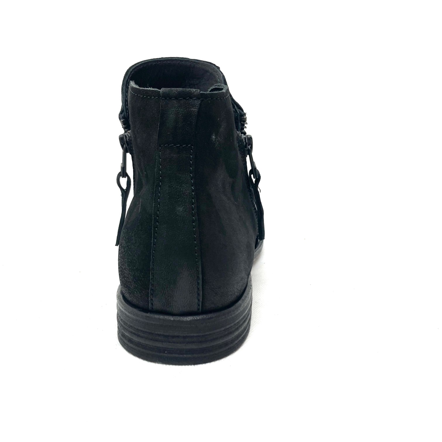 Stivaletto in pelle camoscio lavato nero con doppia zip laterale, suola in cuoio 100% made in italy.
